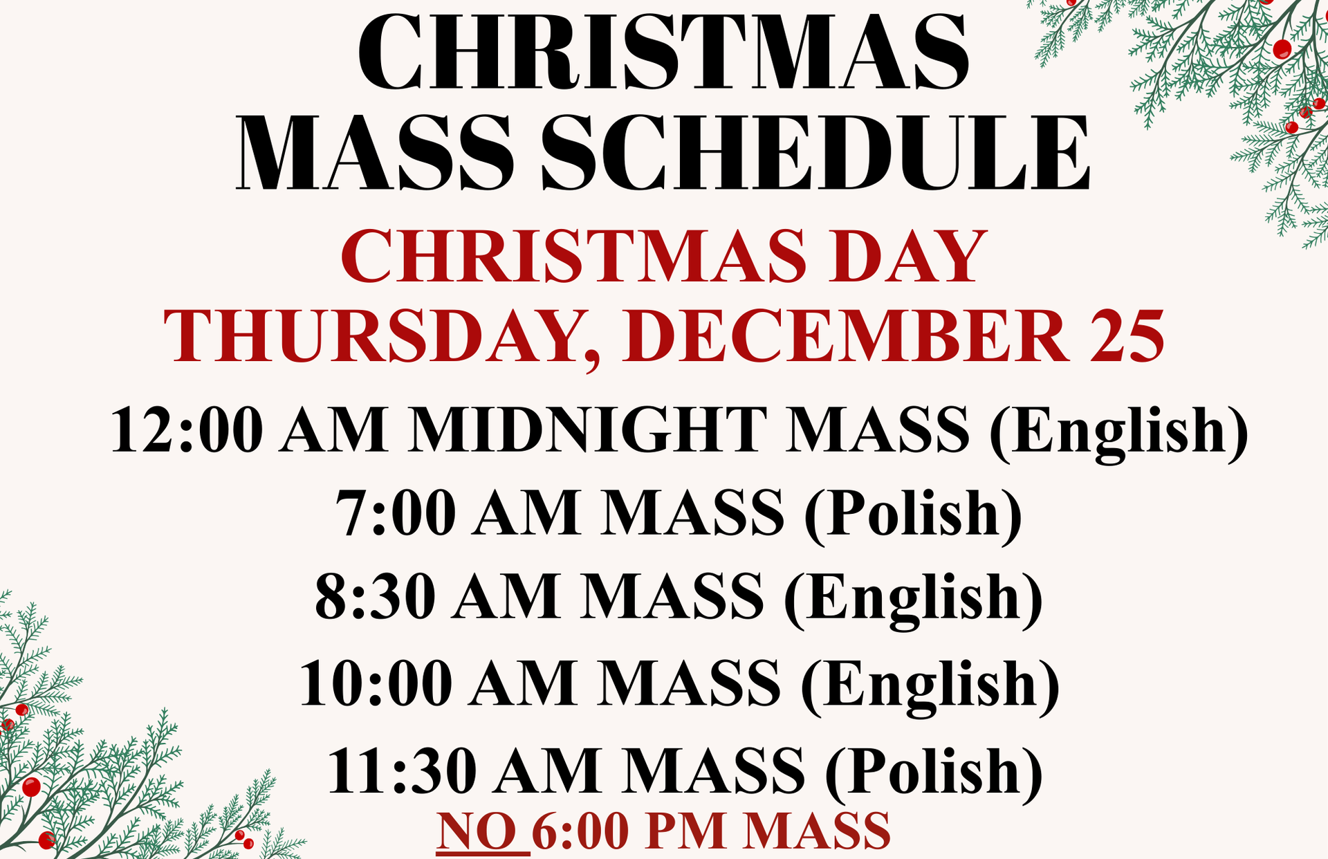 - Mass 7:00 pm in Polish