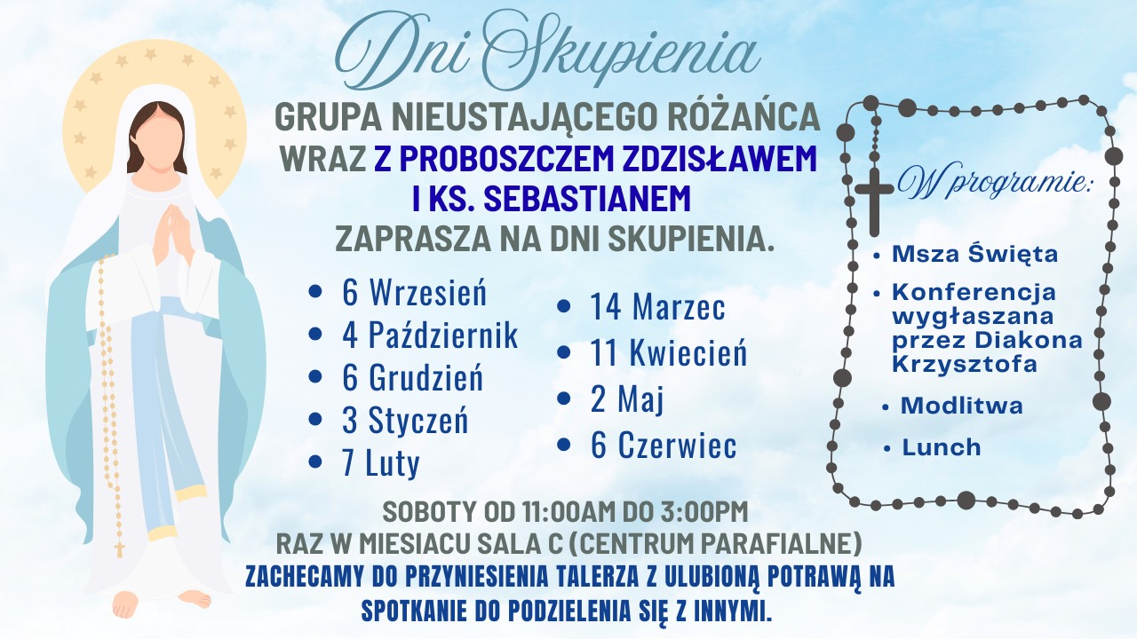 - 4:00 pm Saturday in English & Polish