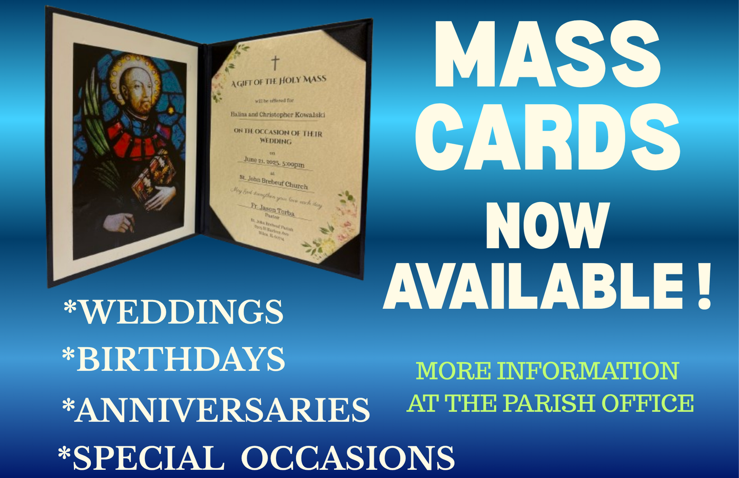 On behalf of Fr. Jason, all our priests, and the parish