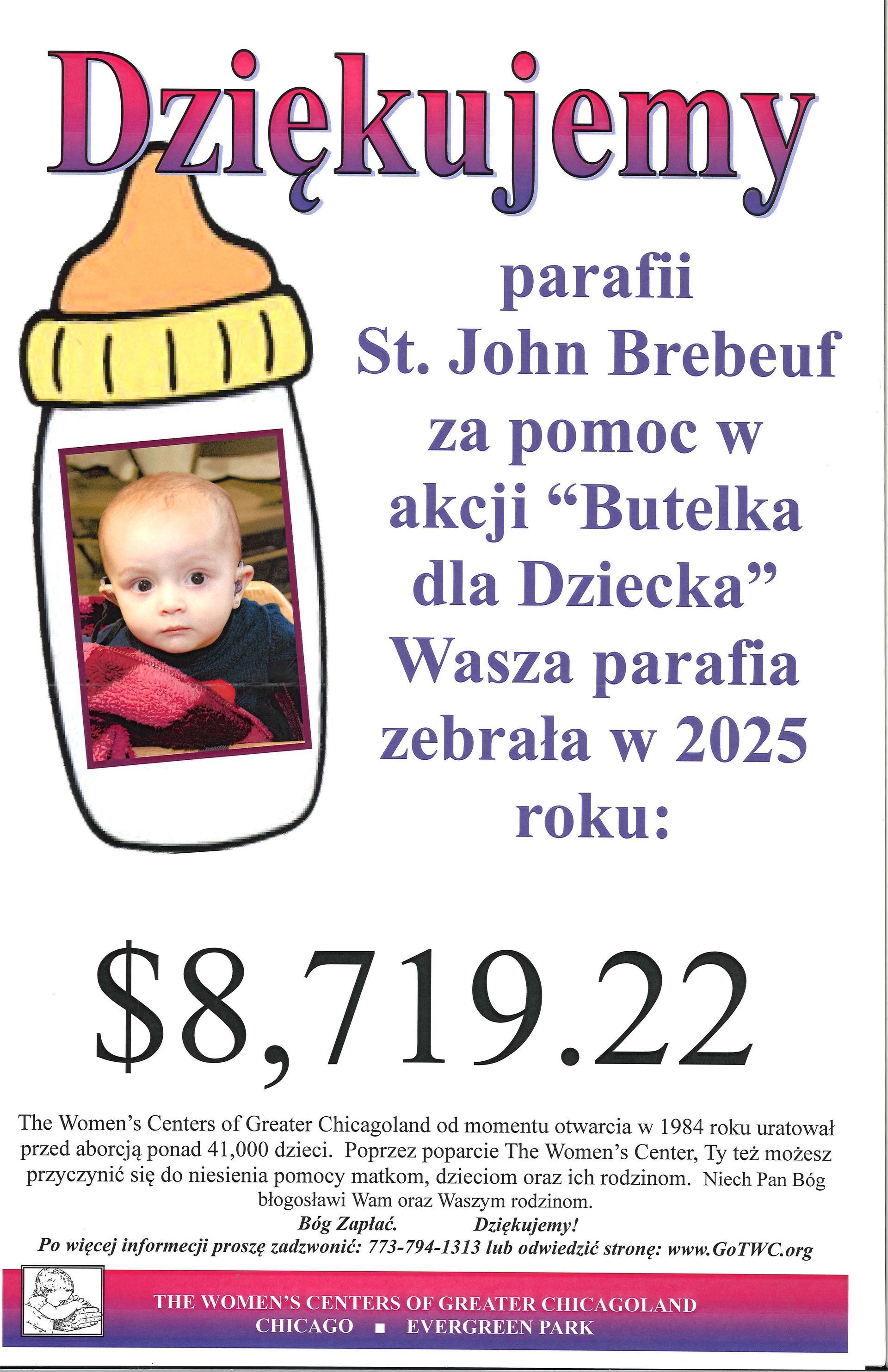 Zarejestrowani parafianie, którzy pragną otrzymać zaświadczenie potrzebne do rozliczenia podatkowego z ogólną kwotą ofiar złożonych na kościół w 2025 roku, proszeni są o wypełnienie formy. Wypełnioną formę można wrzucić na składkę, do skrzynki pocztowej przy biurze parafialnym, przynieść do biura lub przesłać na adres mailowy: office@sjbrebeuf.org